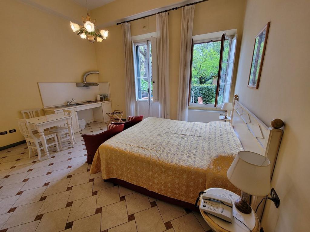 The residence features elegantly furnished suites with high ceilings, classic Italian decor, and modern amenities such as kitchenettes, air conditioning, and free Wi-Fi. Guests can relax in the lush private garden or explore nearby landmarks like the Ponte Vecchio and the Uffizi Gallery. With its blend of old-world charm and contemporary comfort, Residence Michelangiolo provides an intimate and luxurious stay in the heart of Florence.