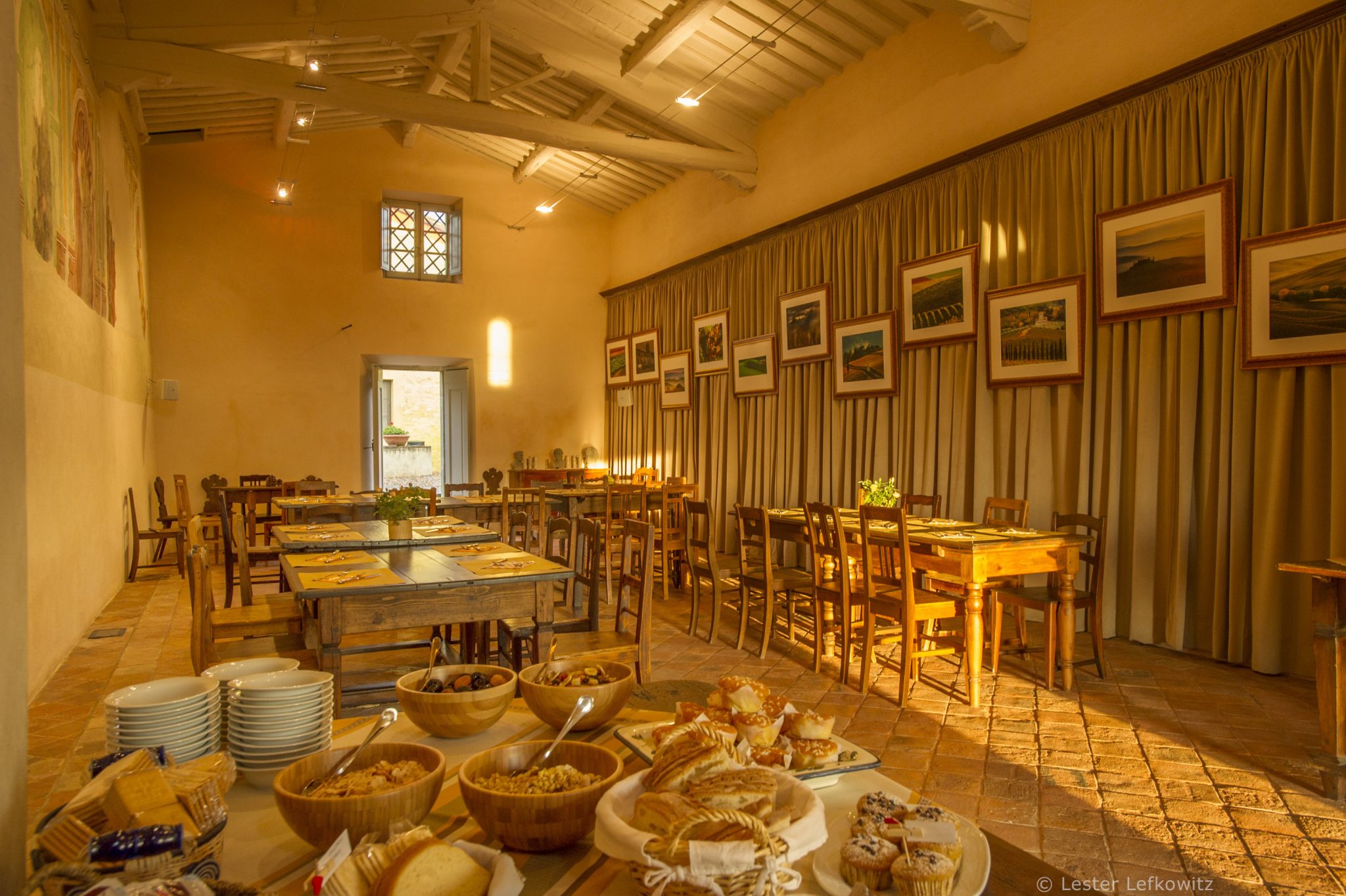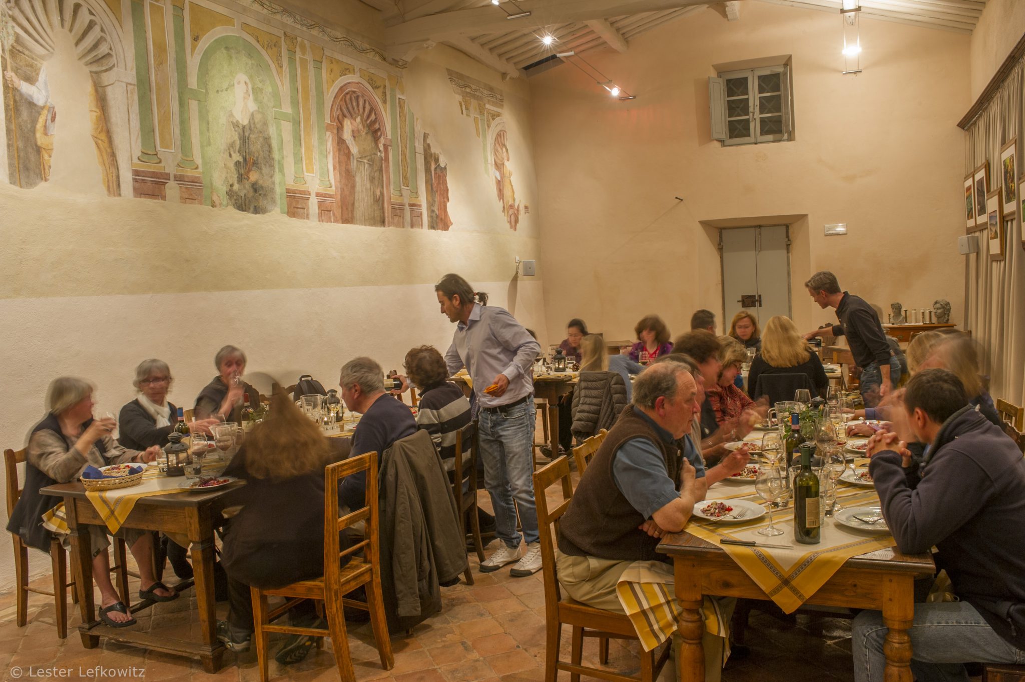 After excursions or painting on location, we’ll return each evening to relax in our 1,000 year old monastery to enjoy the surroundings, have a glass of wine and an informal critique of the day’s work. Then we will move to the dining room (the authentic refectory where the monks used to assemble) to enjoy our local chef’s authentic, home-made Tuscan meal, recapping the day’s adventure with good company.
