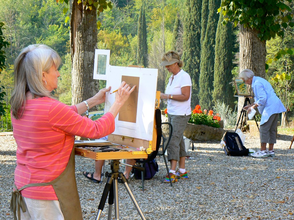 - ½ day painting excursions to nearby plein air settings and hilltowns (San Gimignano, Radda, Volterra,…)