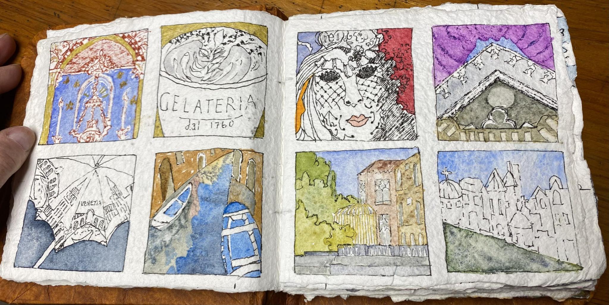 This workshop will encourage each student to capture his/her observations, thoughts, feelings and ideas about the experience of being in this unbelievable place. Venice probably shouldn’t even exist anymore – but it does! Students will work with a book of watercolor paper to produce a personal journal of their trip. Each person will be encouraged to paint their impressions of Venice from intimate images of the colorful squares to the quiet back canals and hidden gardens.